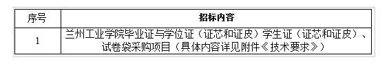 甘肃融合数安招标有限公司受兰州工业学院委托,对兰州工业学院毕业证与学位证(证芯和证皮)学生证(证芯和证皮)、试卷袋采购项目以竞争性磋商方式进行采购,欢迎符合资格条件的供应商前来参加。