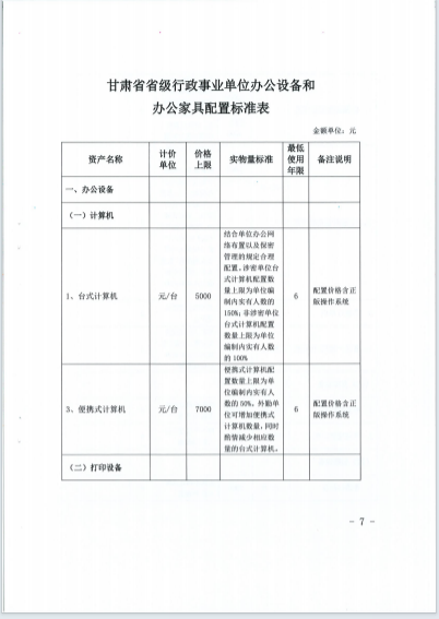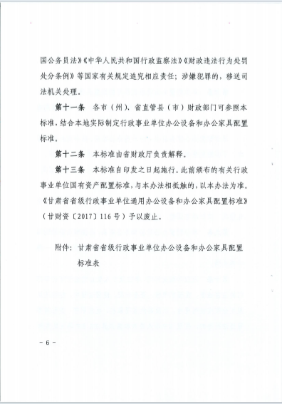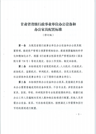 甘肃省省级行政事业单位办公设备和办公家具配置标准修订版甘财资[2023]24号